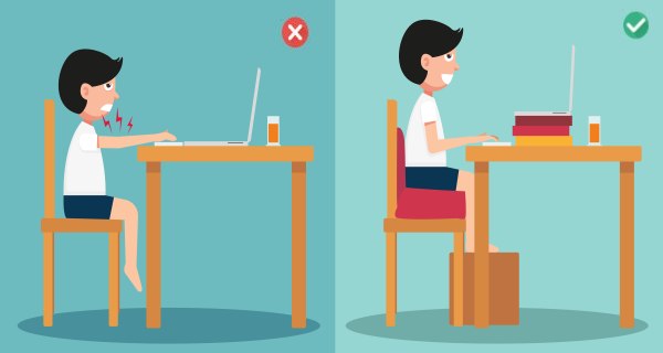 1. Nếu bàn làm việc của bạn thấp hơn ghế, bạn nên để laptop trên chân thay vì trên bàn. Điều đó sẽ giúp bạn ngăn chặn những cơn đau ở cổ, lưng và tay trong thời gian dài.