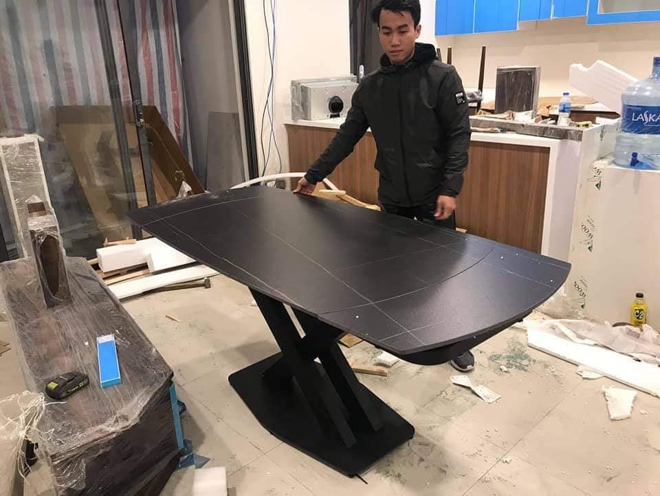 * Vật liệu: Mặt đá, chân thép sơn tĩnh điện.