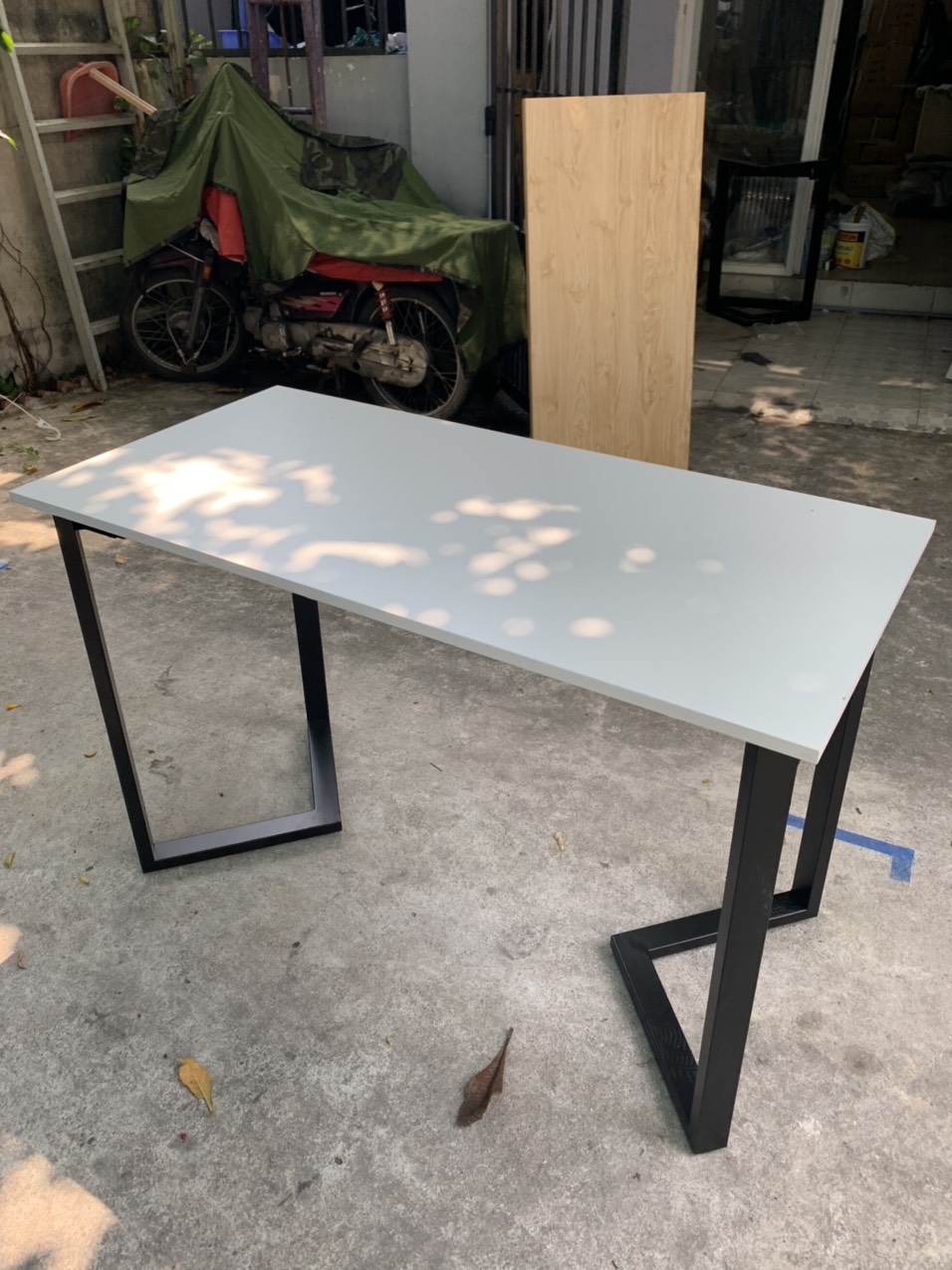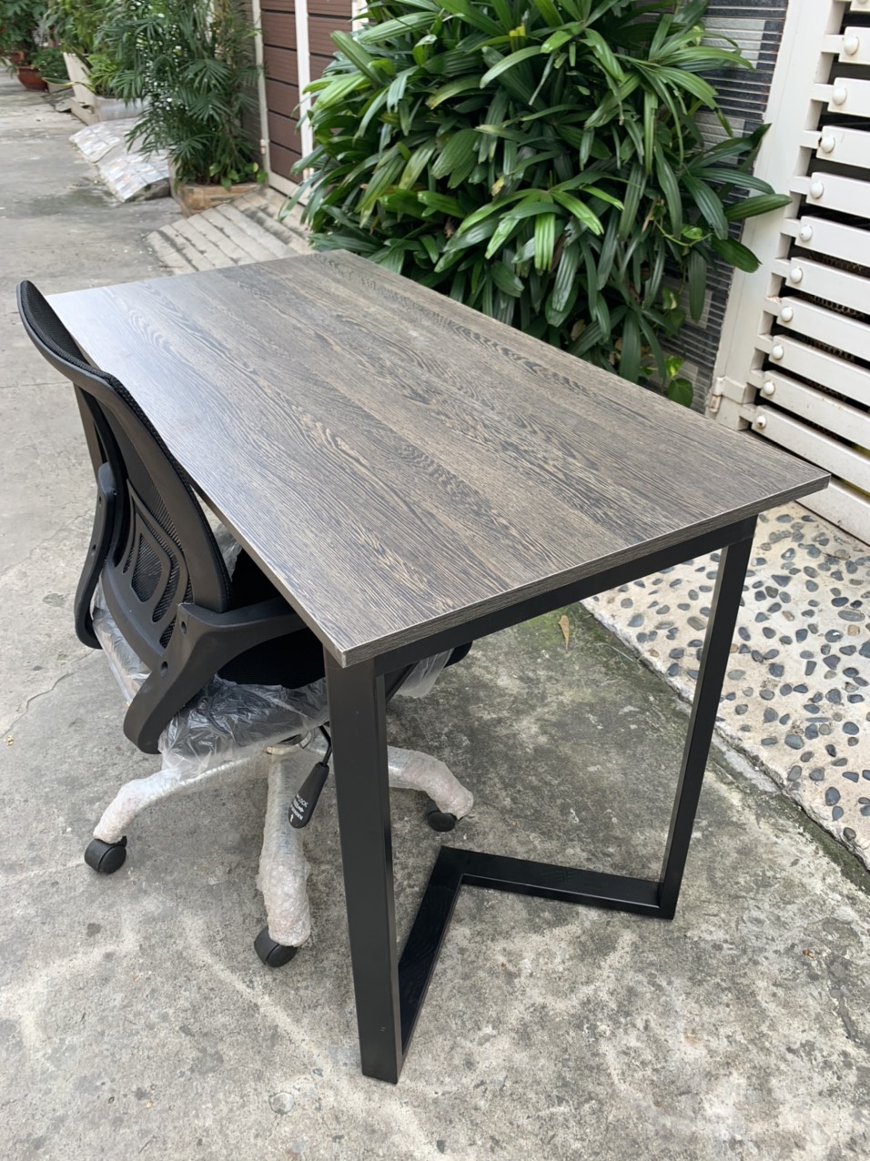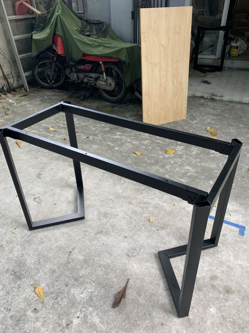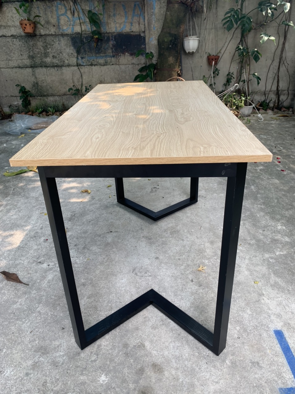 Chân bàn sắt dạng chữ V được làm bằng thép 25x50 sơn tĩnh điện màu đen.