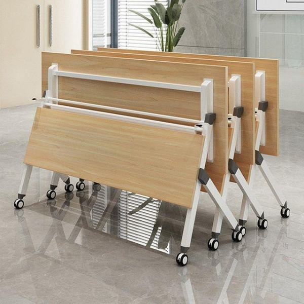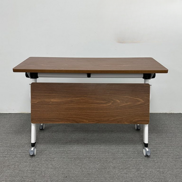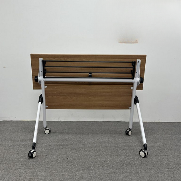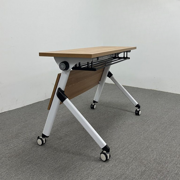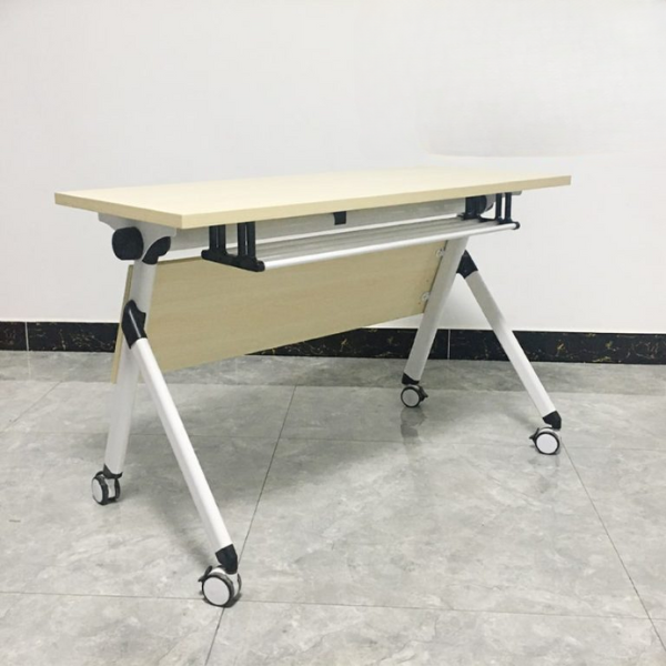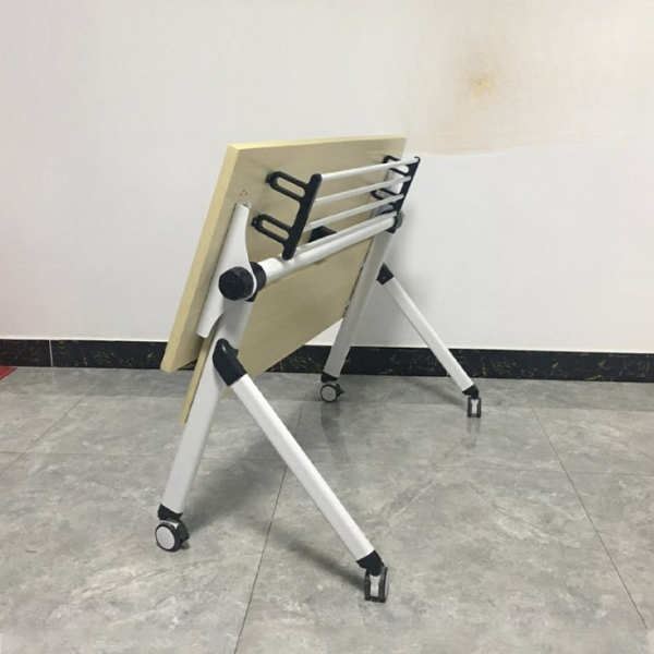 Bàn đào tạo gấp gọn chân gắn bãnh xe: KG - B006 là sản phẩm được Nhập khẩu tại nội thất Khang Gia. Bàn được làm bằng gỗ công nghiệp MDF. Mặt bàn phủ Melamine giúp chống trầy xước và ẩm mốc, bóng đẹp. Mặt bàn dày 18-25mm (đặt theo yêu cầu). Khung sắt sơn tĩnh điện mang vẻ hiện đại bền đẹp với thời gian.