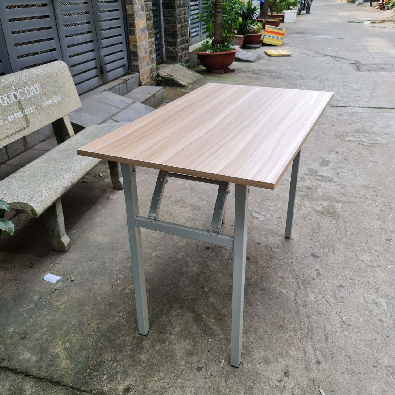 Bàn làm việc chân gấp gọn 1m x 60 : KG - BG1060 được chúng tôi sử dụng chất liệu tốt, đảm bảo về độ bền chắc, màu sắc và vân gỗ đẹp mắt. Mặt bàn sử dụng loại gỗ MDF chống ẩm, là loại tốt nhất, đạt tiêu chuẩn xuất khẩu, đã được xử lý qua công nghệ hiện đại mang lại độ bền bỉ theo năm tháng, bên ngoài được bảo vệ bởi một lớp Melamin chống thấm và phủ 2K chống trầy đảm bảo độ bền cho sản phẩm. Chất liệu sắt sản xuất chân bàn gấp là loại sắt dày 1,2 ly, có khả năng chịu lực tốt, bề mặt được sơn tĩnh điện chống gỉ.