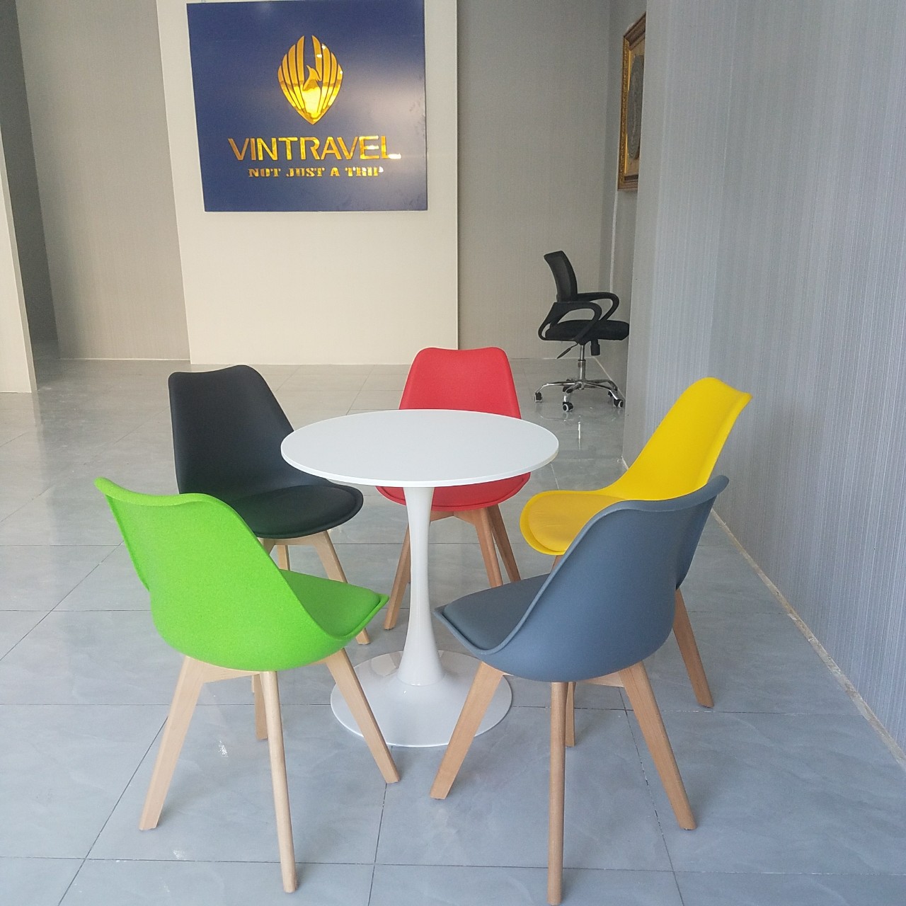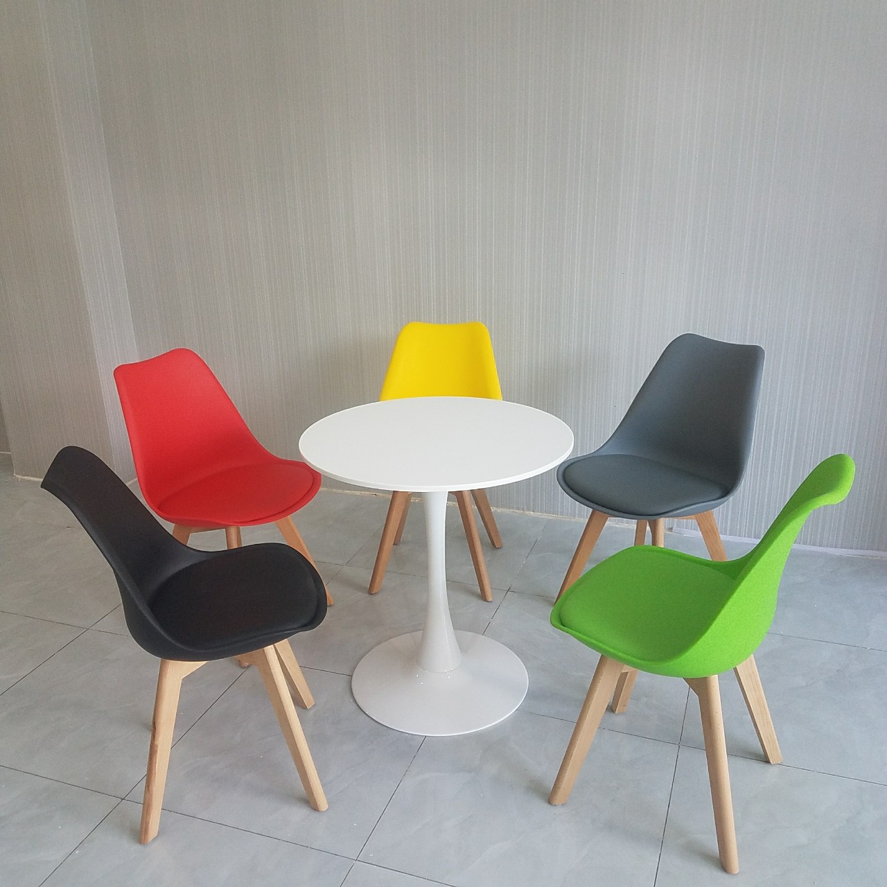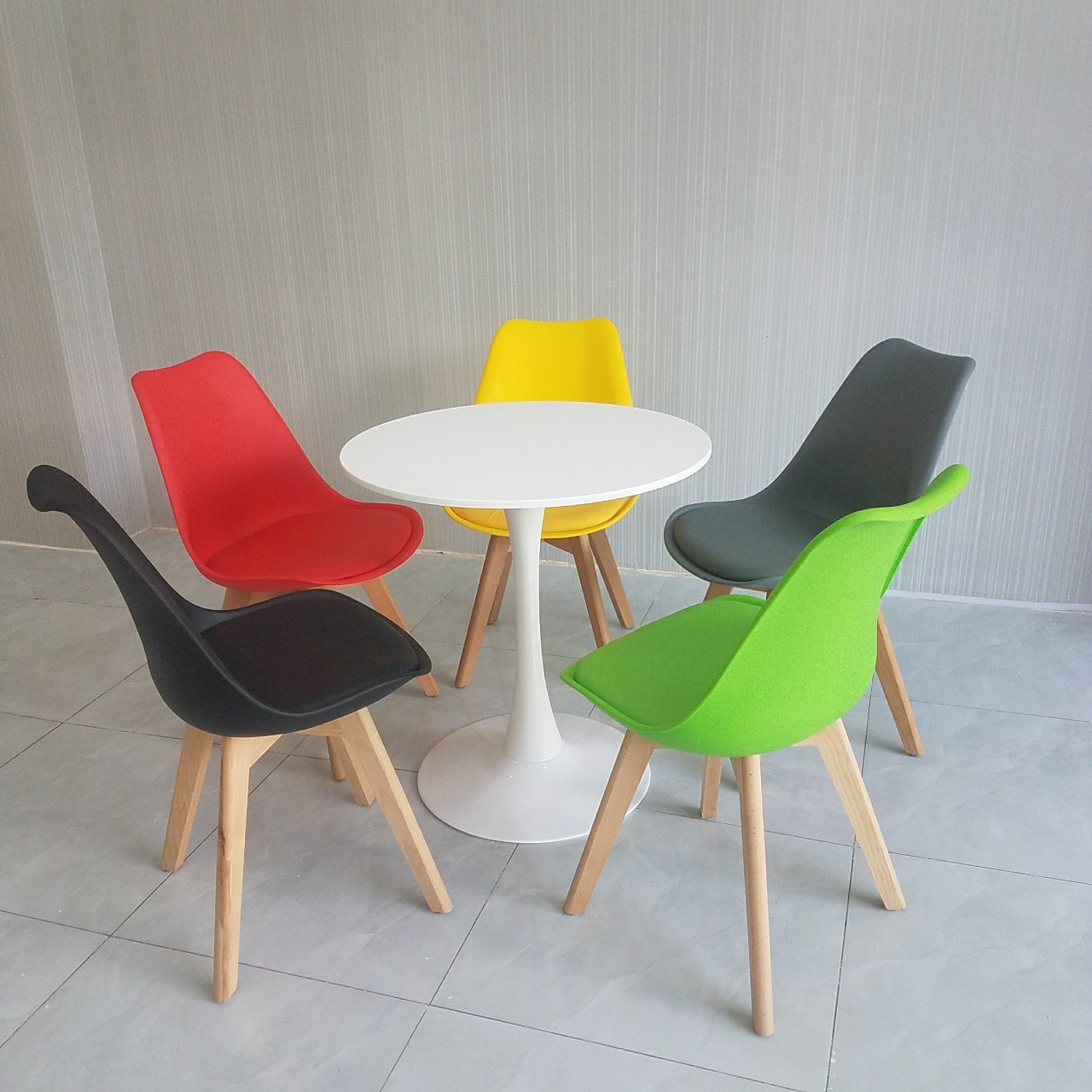 Bộ bàn tiếp khách hiện đại nhập khẩu cao cấp cho 4 người gồm bàn tròn tulip T117 và ghế cafe eames lót nệm 205 được nhập khẩu và phân phối bởi Khang Gia Furniture là lựa chọn thông minh của đối với các bạn trẻ, những gia đình trẻ.