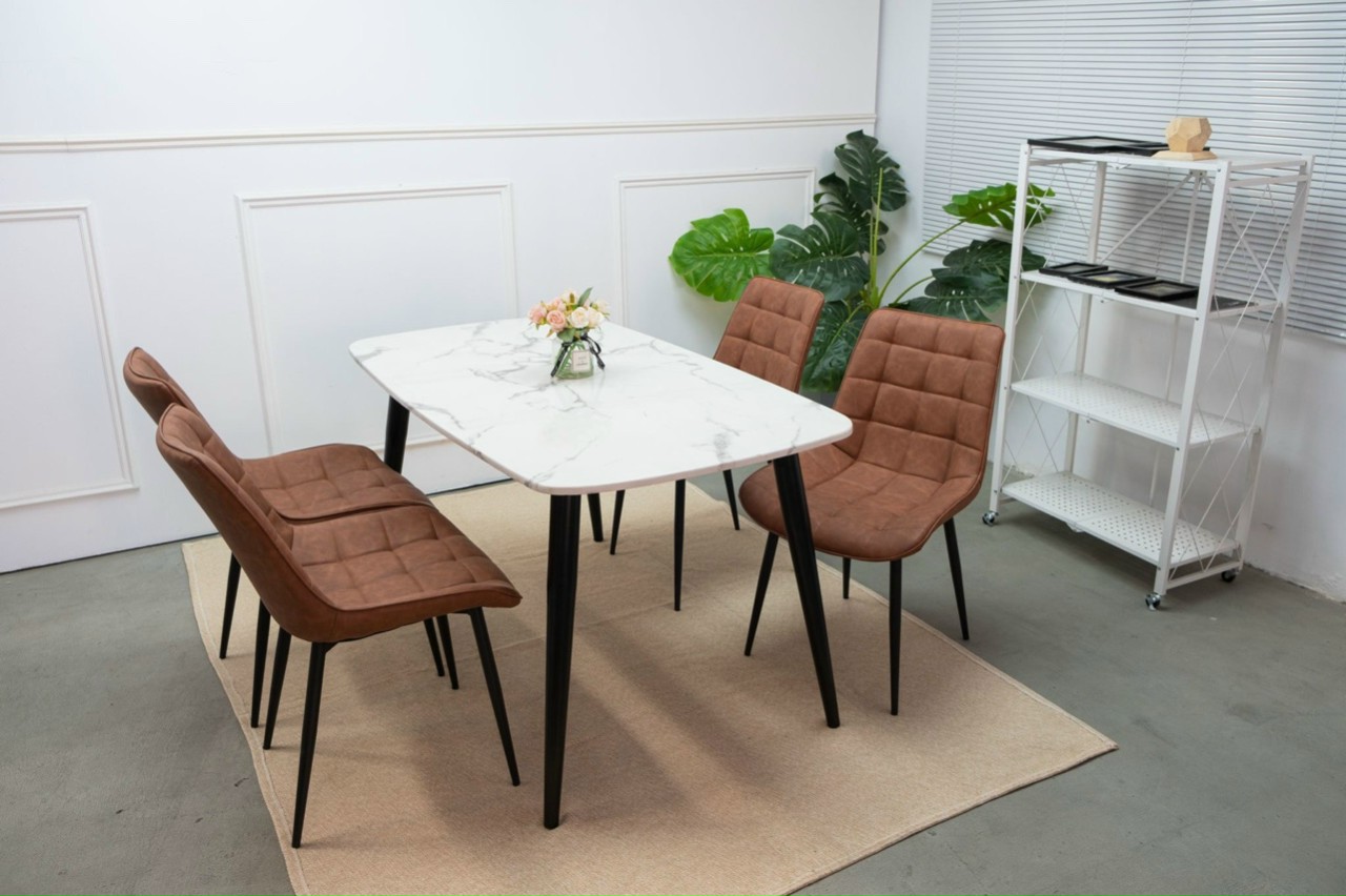 Bộ bàn ăn hiện đại sang trọng 1 bàn + 4 ghế :Thiết kế vô cùng đơn giản nhưng tinh tế cùng màu sắc tone màu rất dễ kết hợp với nhiều không gian. Sản phẩm phù hợp nhất khi sử dụng cho không gian nội thất cổ điển như: