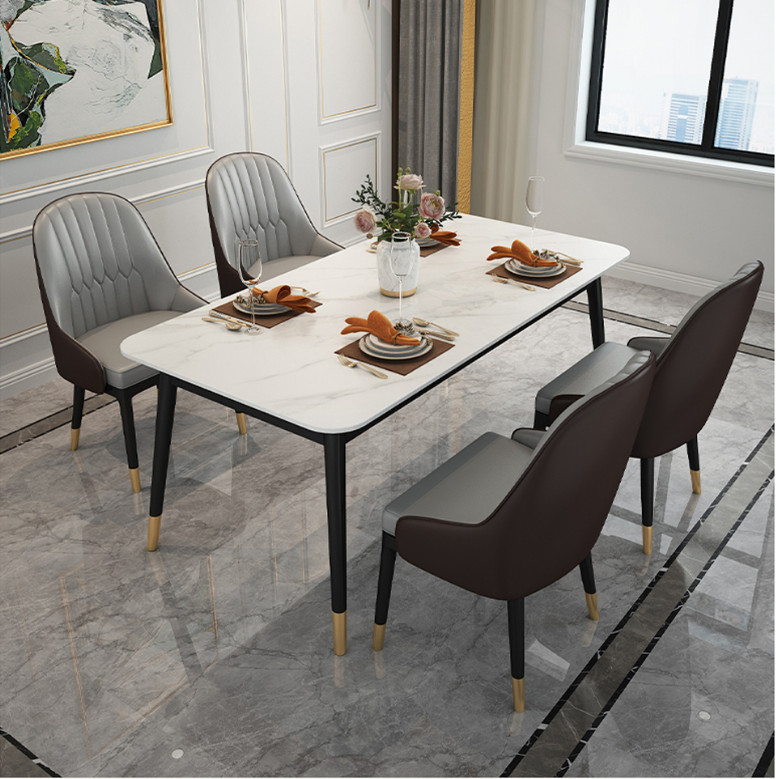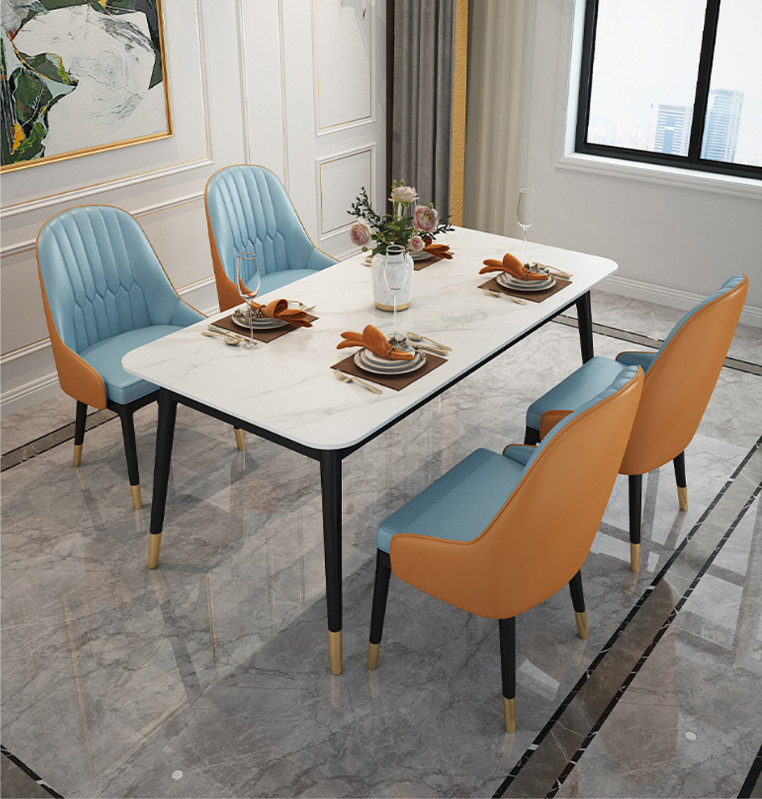 Nếu bạn cần 1 bộ bàn ăn sang trọng, đẳng cấp, tinh tế, thì đây là giải pháp cho bạn. Bàn Mặt Đá Siêu Sang – Chống Thấm, Chống Trầy Chân Bàn và Ghế: Thép Sơn Tĩnh Điện Bọc Núm Đồng, Cực Sang Trọng Chân Ghế Thép Mạ Vàng Thân Ghế Bọc Toàn Nệm Cao Cấp (Nhung hoặc Da) Phần Tựa Lưng Thoải Mái Cực Êm.