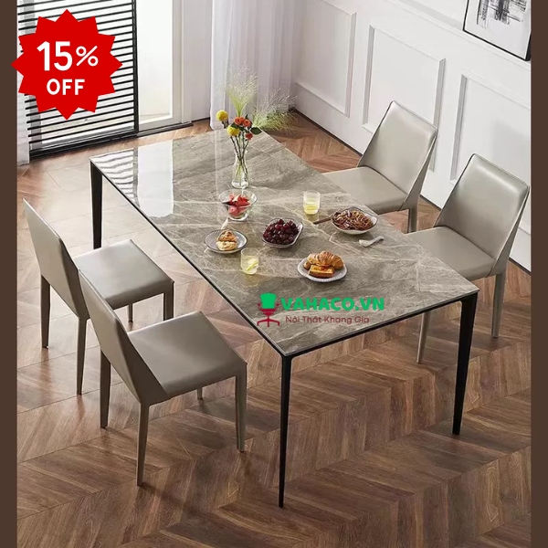 - Chất liệu: Mặt đá, khung kim loại, da PU