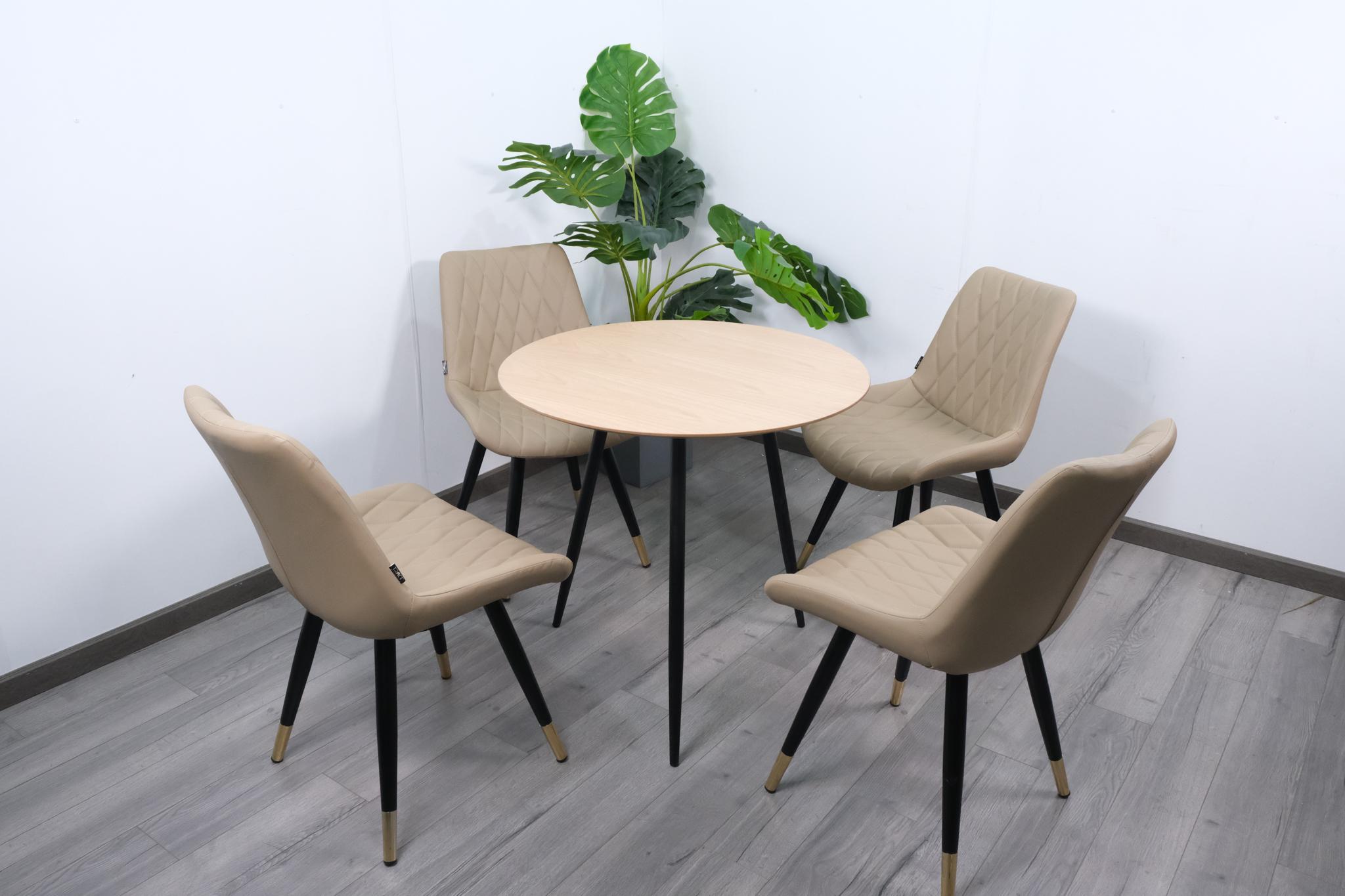 – Màu sắc: Bàn mặt nâu, chân đen; Ghế: Nâu nhạt, nâu đậm, kem, đen.