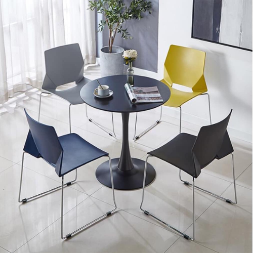 Ghế nhựa đúc đa sắc: Bộ ghế đi kèm với thiết kế tối giản, lưng tựa thoải mái, được làm từ nhựa đúc cao cấp, có khả năng chịu lực tốt. Ghế có nhiều màu sắc khác nhau, tạo nên sự sinh động và trẻ trung cho không gian. Chân ghế bằng thép mạ chrome, tạo sự chắc chắn và bền bỉ.