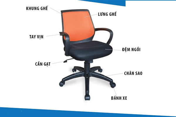 1. Cấu tạo các bộ phận của ghế xoay văn phòng
