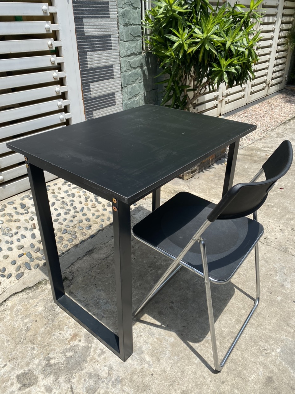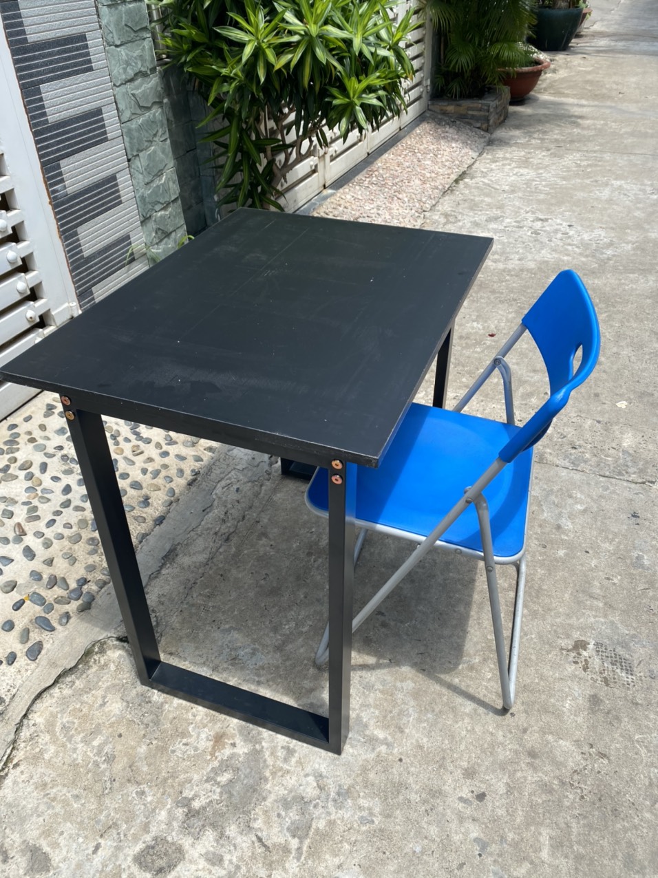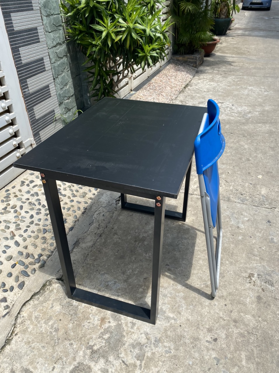 Combo bộ bàn ghế chân sắt mini 60 x 80 khung lắp ráp + ghế gấp mặt nhựa : KG - B04.