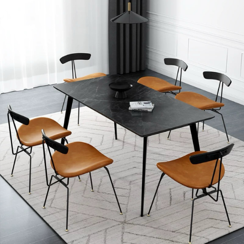 - Chân ghế làm từ kim loại chắc chắn, sơn tĩnh điện màu đen, tạo sự tương phản tinh tế với màu sắc của da bọc.