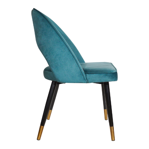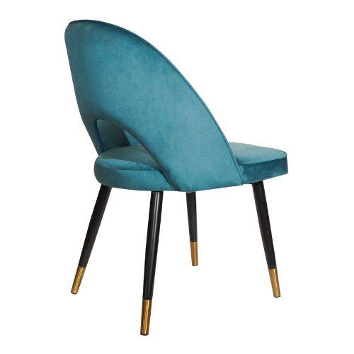 Chất liệu: Ghế được bọc vải nhung cao cấp, có độ bền cao, chống bám bụi và dễ dàng vệ sinh. Khung ghế được làm từ thép chắc chắn, chịu lực tốt, đảm bảo độ bền vững lâu dài. Điểm nhấn nổi bật là chân ghế được bọc núm đồng, không chỉ tạo nên sự sang trọng mà còn tăng cường độ bền và khả năng chống trầy xước.