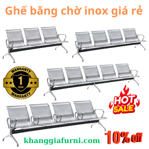Ghế băng chờ inox giá rẻ: KG - A345 là giải pháp tối ưu cho nhu cầu chỗ ngồi chờ đợi, mang lại sự thoải mái và tiện nghi cho người sử dụng với chi phí hợp lý. Đừng bỏ lỡ cơ hội sở hữu sản phẩm chất lượng này với ưu đãi giảm giá hấp dẫn!