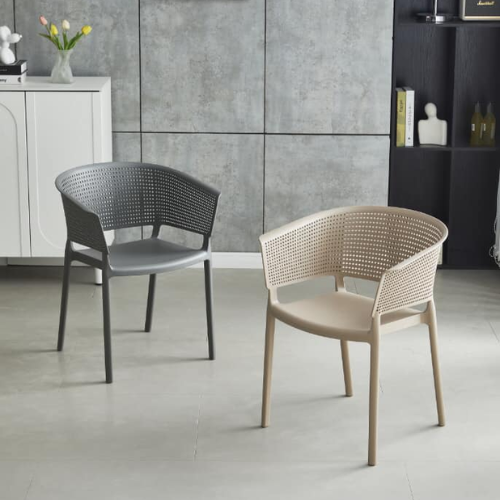 Thiết kế thoải mái: Ghế được thiết kế với lưng tựa và tay vịn cong mềm mại, tạo cảm giác thoải mái khi ngồi. Mặt ghế rộng rãi và chắc chắn, phù hợp với nhiều dáng người khác nhau.