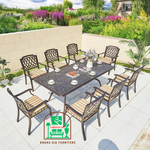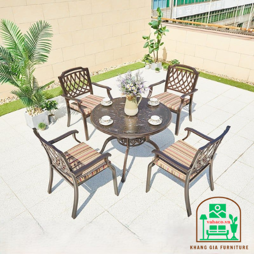 Nếu bạn sở hữu một nhà nhỏ hẹp, một quán cafe diện tích vừa phải hay một sân vườn nhỏ xinh thì đồ nội – ngoại thất cũng nên đơn giản, ít chi tiết tránh tạo cảm giác chật hẹp, bí bách hơn. Bàn ghế hợp kim nhôm đúc nghệ thuật là sự thích ứng tuyệt vời vì chúng sở hữu thiết kế không quá cầu kỳ nhưng vẫn đầy đủ sự tiện nghi và trang nhã.