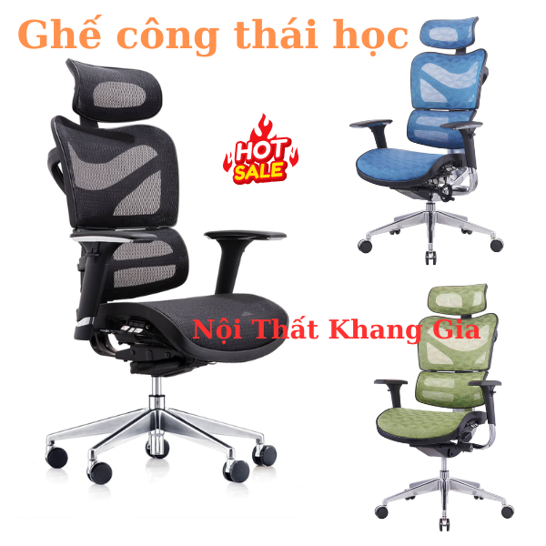 - Nhiều màu sắc lựa chọn: Ghế có 3 màu sắc: đen, xanh và xám, phù hợp với nhiều không gian làm việc khác nhau.