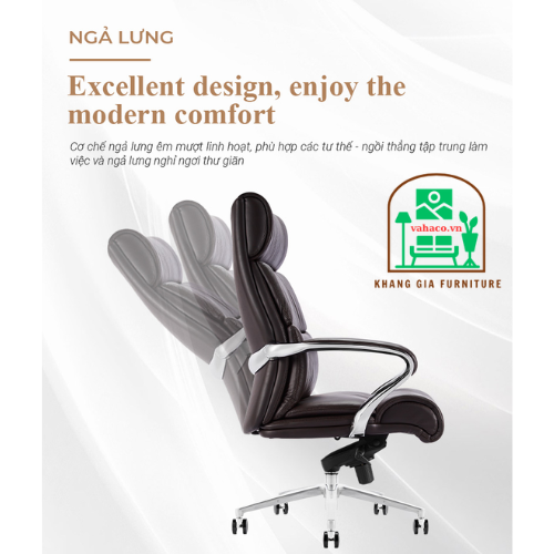 Ghế được trang bị tất cả các chứng năng cơ bản của một chiếc ghế xoay cao cấp : Xoay, nâng hạ chiều cao, ngã người thư giãn…