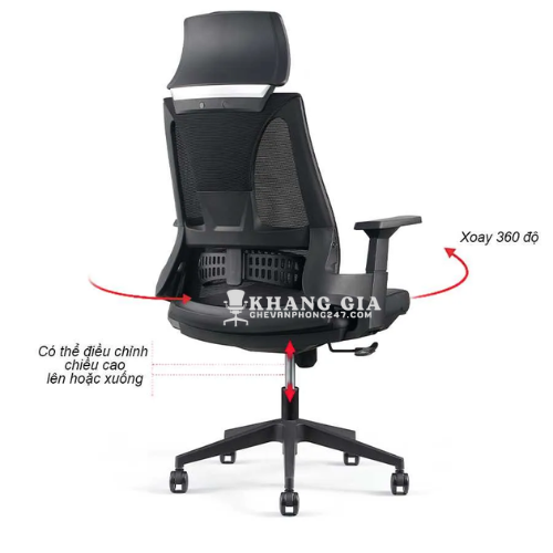 - Ghế có thể điều chỉnh độ cao, độ ngả lưng, xoay 360 độ, giúp người dùng dễ dàng tìm được tư thế ngồi thoải mái nhất.