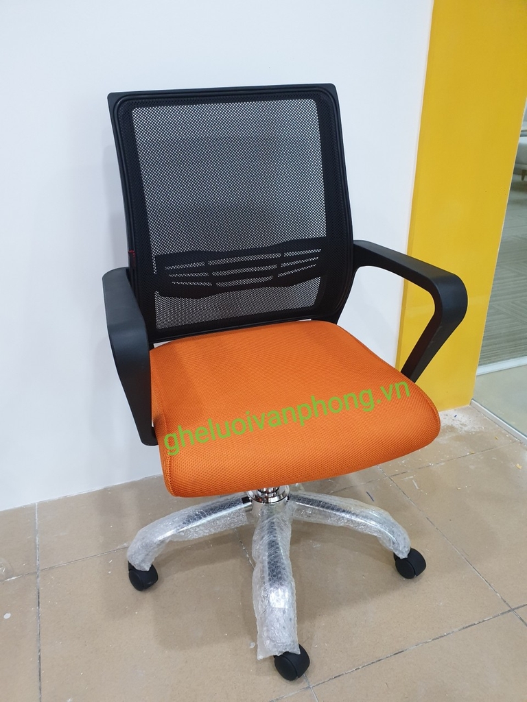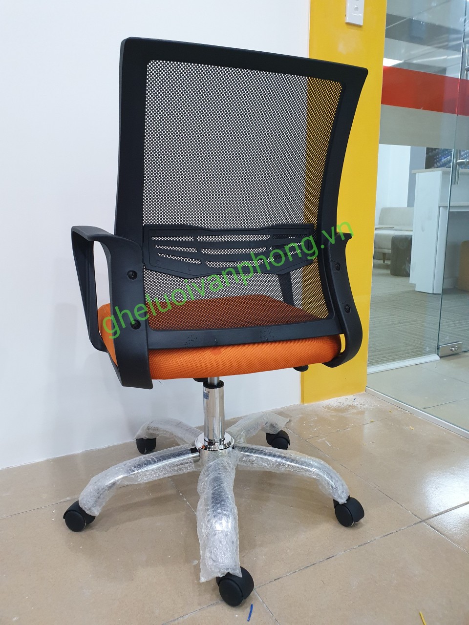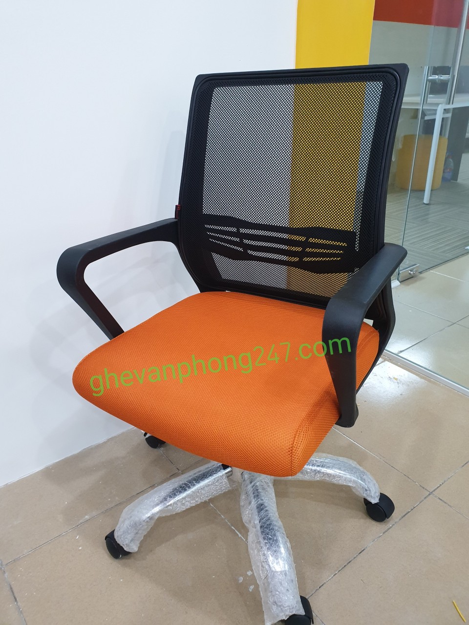 Ghế xoay văn phòng, tựa vải lưới, đệm nỉ bọc mút màu đen.