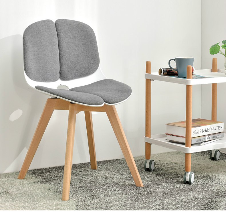 Chân ghế gỗ Beech màu tự nhiên, hàng nhập khẩu,ghế có các màu thân nhựa trắng, nệm vải xám hoặc xanh rêu đậm.Thân ghế màu đen, nệm vải màu xanh rêu đậm hoặc xám