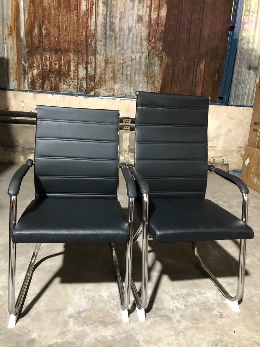 Ghế phòng họp nệm da chân quỳ: KG - C2201 chân sắt mà crom , mặt ngồi tựa lưng bọc simili , chiều cao mặt ngồi ghế 45 cm