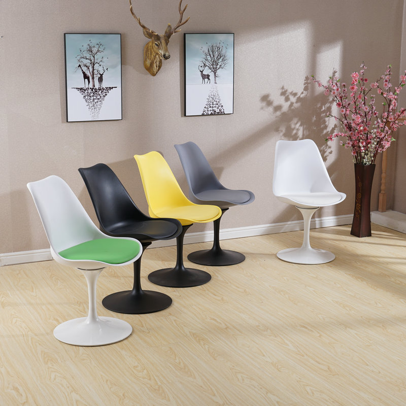 Ghế Tulip sang trọng hiện đại nhập khẩu- Mã : E258, lấy cảm hứng từ biểu tượng của đất nước Hà Lan xinh đẹp- hoa Tulip với kiểu dáng mềm mại, nhẹ nhàng như một đóa Tulip nhiều màu sắc gồm phần thân nhựa lót nệm có thể phối nhiều màu sắc khác nhau tạo nên sự rực rỡ của vườn hoa Tulip sống động giúp có thể phối màu với nhiều tone màu nội thất khác nhau. Phần chân ghế được chế tạo từ thép sơn tĩnh điện chắc chắn được tạo hình hiện đại như một nhánh hoa Tulip sang trọng. Phần chân có thể xoay tạo nện sự tiện dụng, thoải mái cho người ngồi.