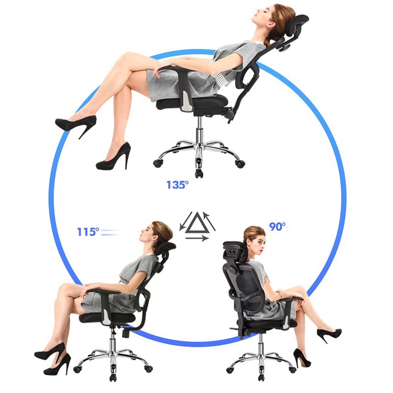 – Tựa ghế có khả năng ngả ở nhiều góc độ khác nhau kết hợp hài hòa với tựa gối đầu thích hợp khi ngồi làm việc hoặc thư giãn.