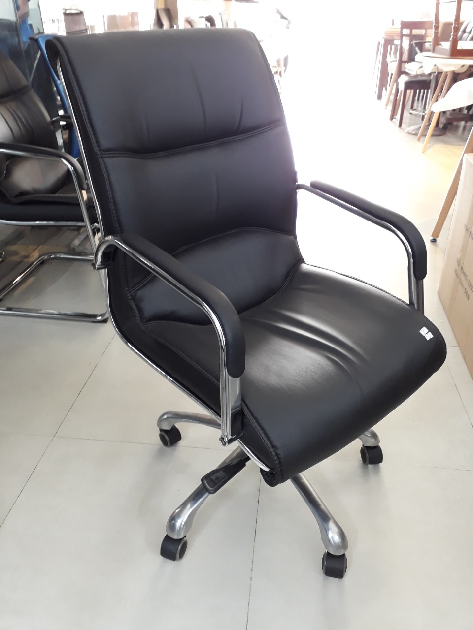 Ghế Văn Phòng Lưng Trung : KG - 203B được thiết kế kiểu ghế xoay cao cấp bọc da công nghiệp màu đen được sử dụng trong phòng làm việc.