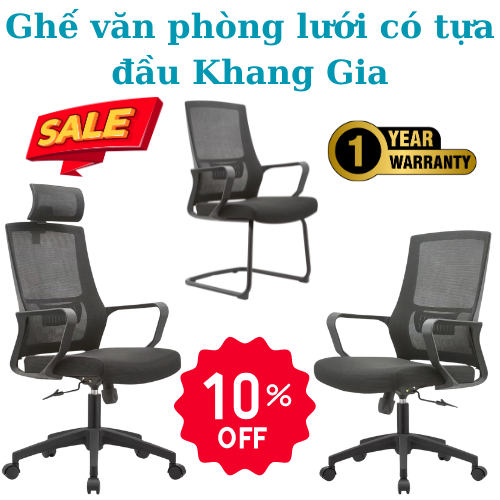Hãy lựa chọn ghế văn phòng lưới có tựa đầu Khang Gia JC-A75 để trải nghiệm sự thoải mái và hiệu quả trong công việc!