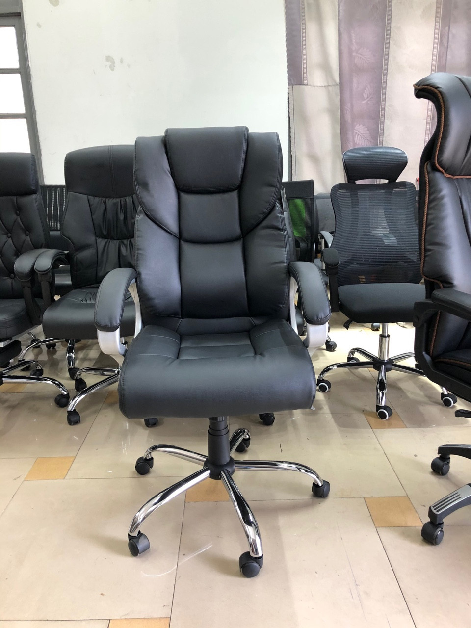 Ghế xoay giám đốc nhập khẩu : KG - 555 hiện màu Đen mang phong cách mạnh mẽ, cá tính,nổi bật, kích thích giác quan người nhìn, tạo cảm hứng.