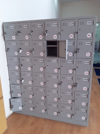 - Tủ gồm 36 ô đều nhau, mỗi ô có 1 đợt chia làm 2 ngăn, trên mỗi cánh có khóa locker, núm tay nắm, lỗ thông gió và dập bảng tên nhân viên. Tủ tiếp xúc sàn bằng 4 chân cao su.